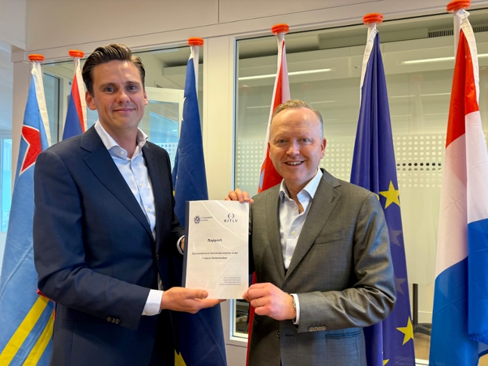 Overhandiging rapport door Wouter Veenendaal aan Roald Lapperre (van Koninkrijksrelaties)