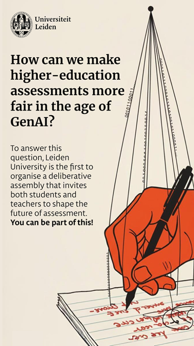 We want to make sure that assessments – exams, papers, presentations – remain fair, or become more fair, now that students and teachers have access to GenAI technologies. To this end, Leiden University's FAIR-ASSESS project organises a deliberative assembly to formulate rules for GenAI use in assessments. The assembly will gather 49 people - students and teachers - within our university (7 for each faculty).