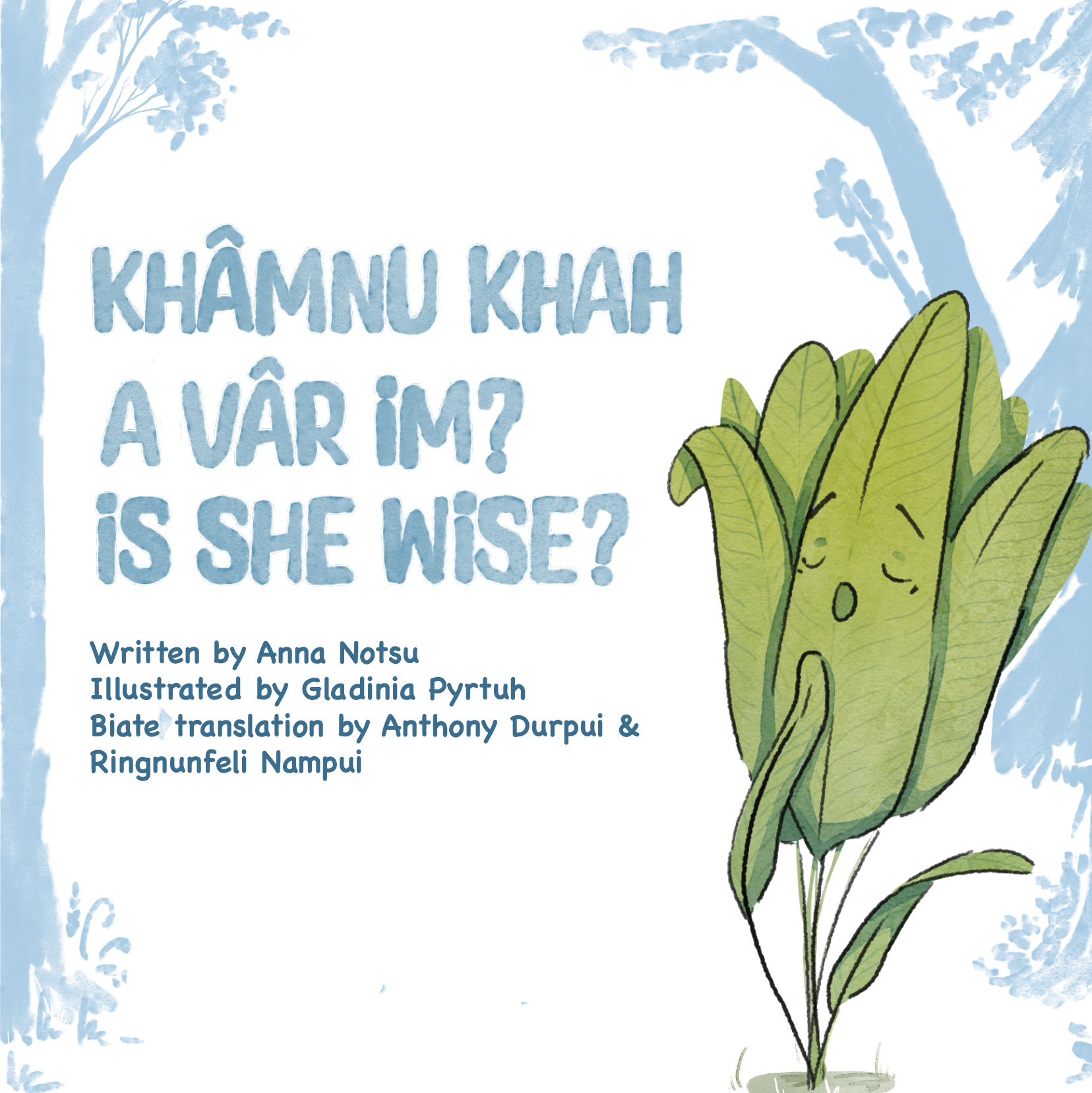The story of the book is an adapted version of a story collected by one of the children. It is about a talking plant called Nathial, who refuses to be plucked by a man who was sent off by his wife to collect Nathial leaves. The plant, refusing to go with the man, begins to ask questions about his wife instead: ‘’Is she wise?’’.