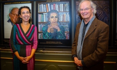 Surrounded by proud family members, friends, and colleagues, Judi was finally able to unveil her portrait on Monday. The work hangs among the busts of professors from previous centuries – predominently men. FGGA Dean Koen Caminada acknowledges this in his speech: 'That 450-year history looks rather masculine.' Judi herself brought change to it. In 2016, she was one of four female professors – the ‘Athena’s Angels’ – who displayed photos of female professors here during a unique exhibition.