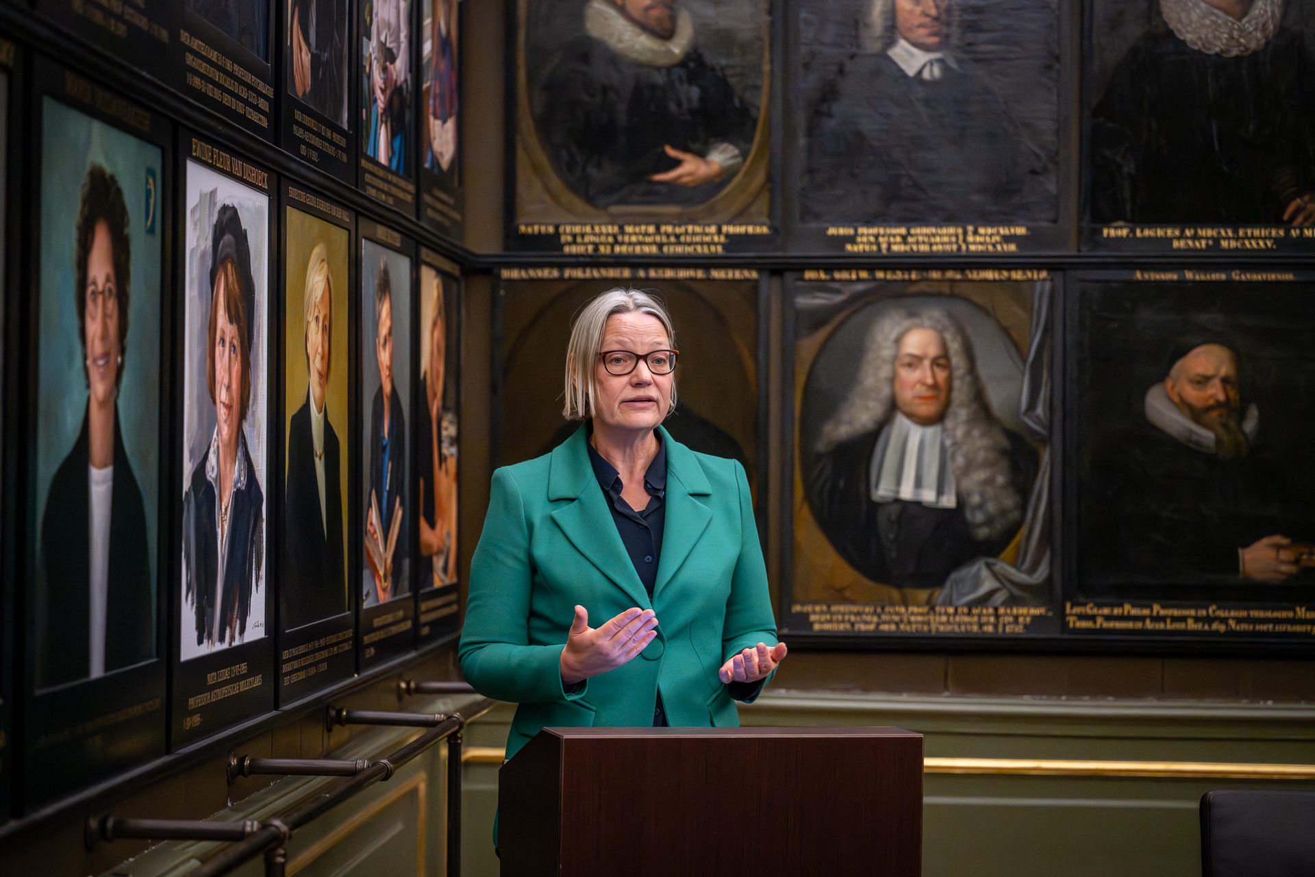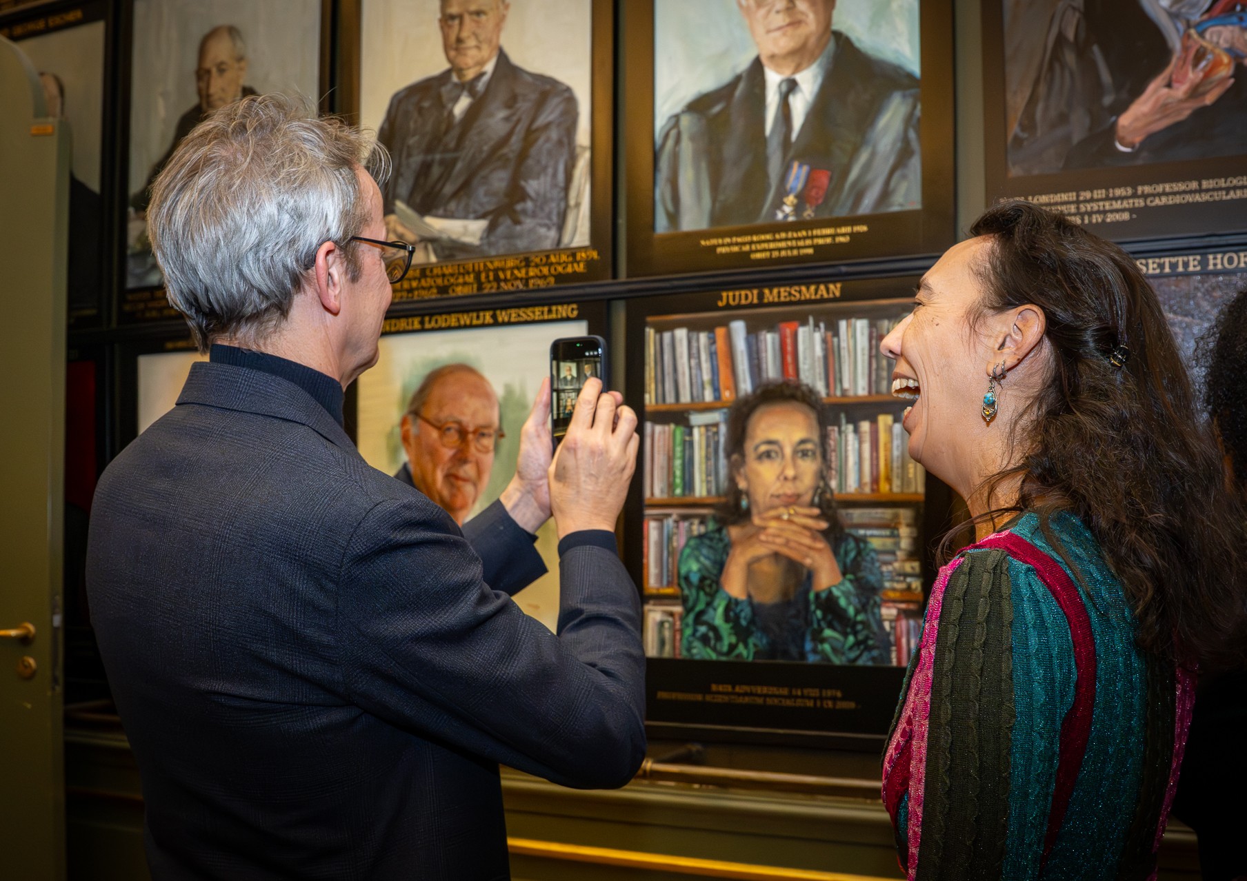 A truly special moment in the Senate Chamber of the Academy Building: the portrait of Professor Judi Mesman has been unveiled. 'Leiden University only reserves places in this chamber for its foremost scholars, and you are certainly one of them,' said Rector Magnificus Hester Bijl.