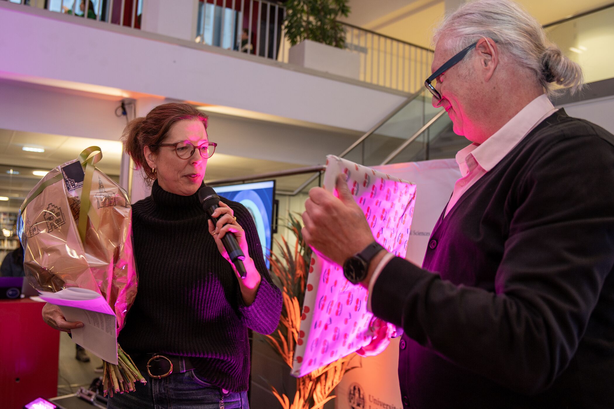 The vacant portfolio of De Rijcke will for the time being be provisionally taken over by Vice-Dean Bart Barendregt. “We are extremely fortunate that Bart Barendregt immediately put up his hand when I announced that I was going to become rector,” De Rijcke tells the audience. He will remain in this position and fulfil this role until a permanent successor has been appointed.