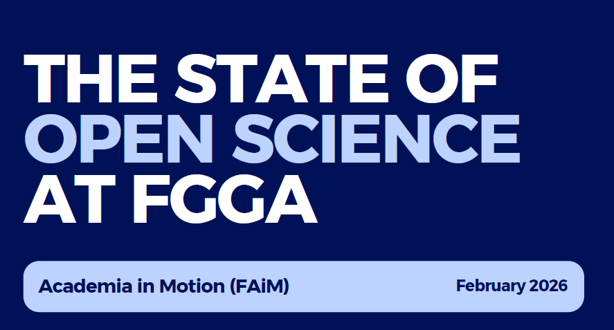 To get a grasp of what Open Science means at FGGA, members of the faculty Academia in Motion advisory group (fAiM) carried out a survey in 2025 among research and teaching staff. The results of the survey are now in and point to exciting ideas about growth areas in open science (especially around citizen science and/or open education), but also some challenges that need to be addressed in a creative and responsible way (for instance, around barriers that still persist when it comes to Open Access publications).