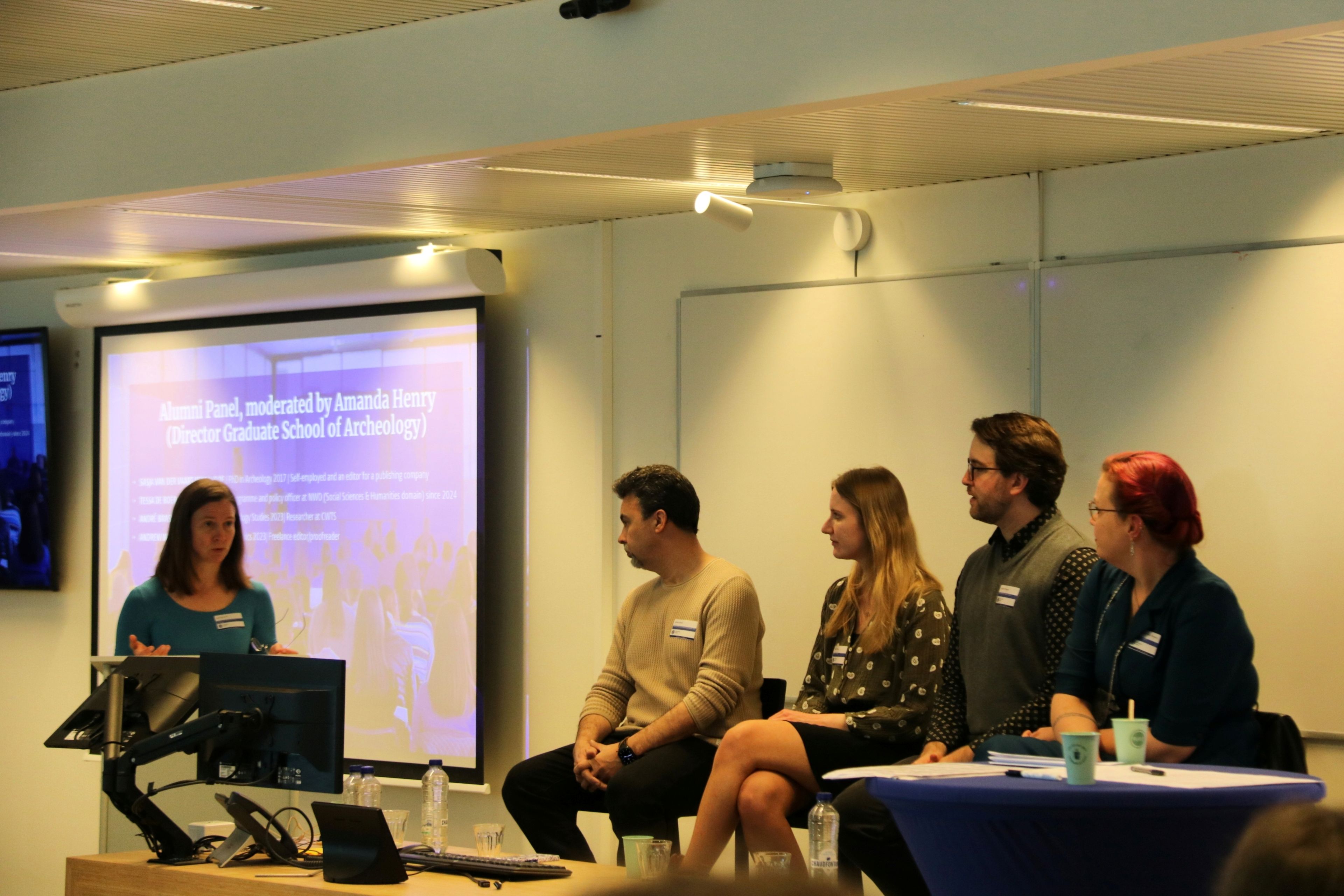 The day concluded with an alumni panel, moderated by Amanda Henry, Director of the Graduate School of Archaeology. Former PhD candidates shared their experiences and insights on pursuing careers both inside and outside academia.