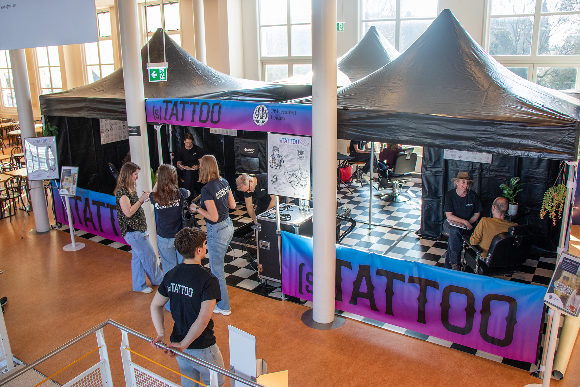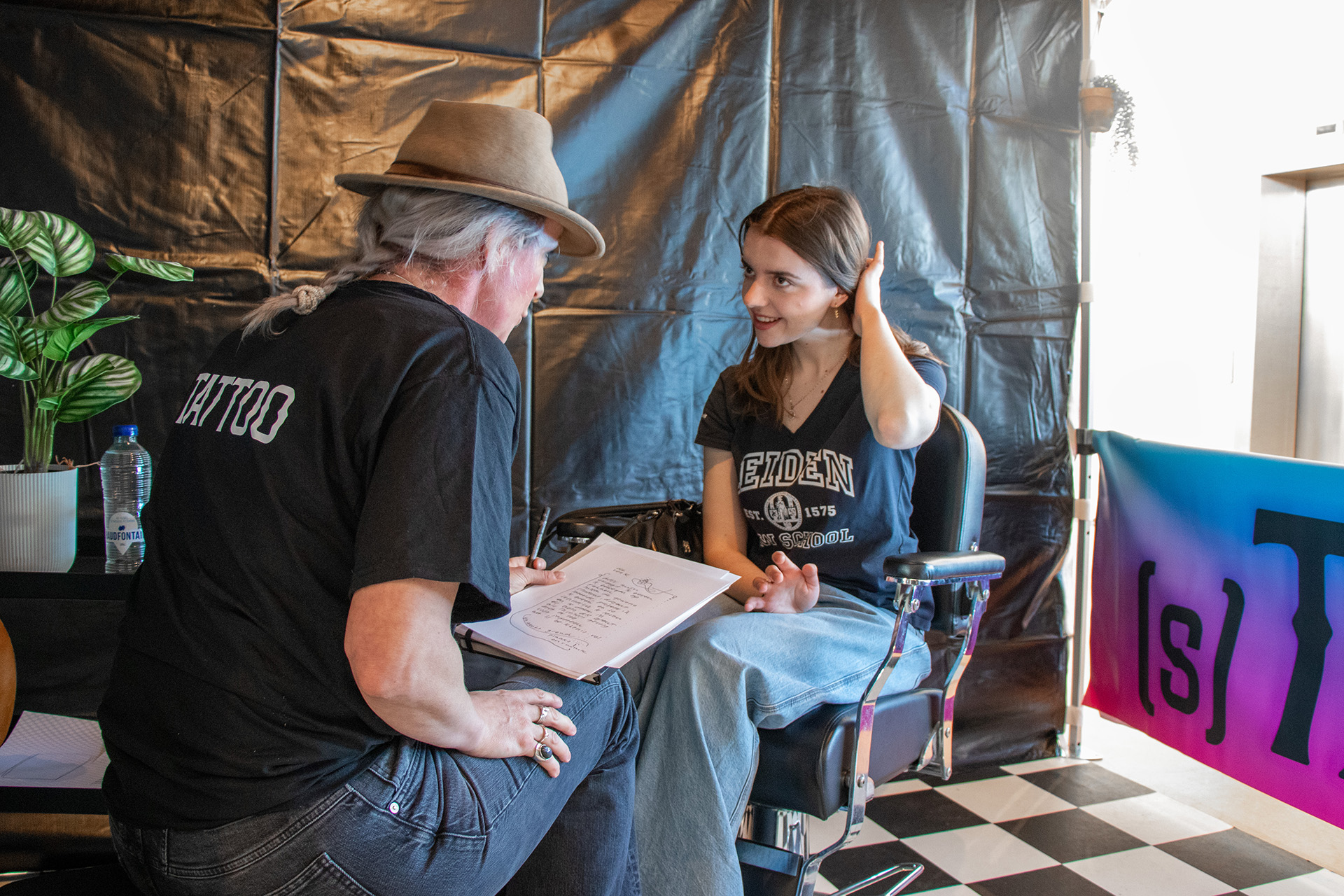 With a bit of mental gymnastics, [s]TATTOO can be read as ‘sta toe’, the Dutch for ‘allow’. It reflects the idea that students and staff allow someone else to hear their experiences. The idea for the studio came from the question: Where do people open up when someone is literally close by? ‘I immediately thought of a hairdresser’s or tattoo studio’, says De Boer.