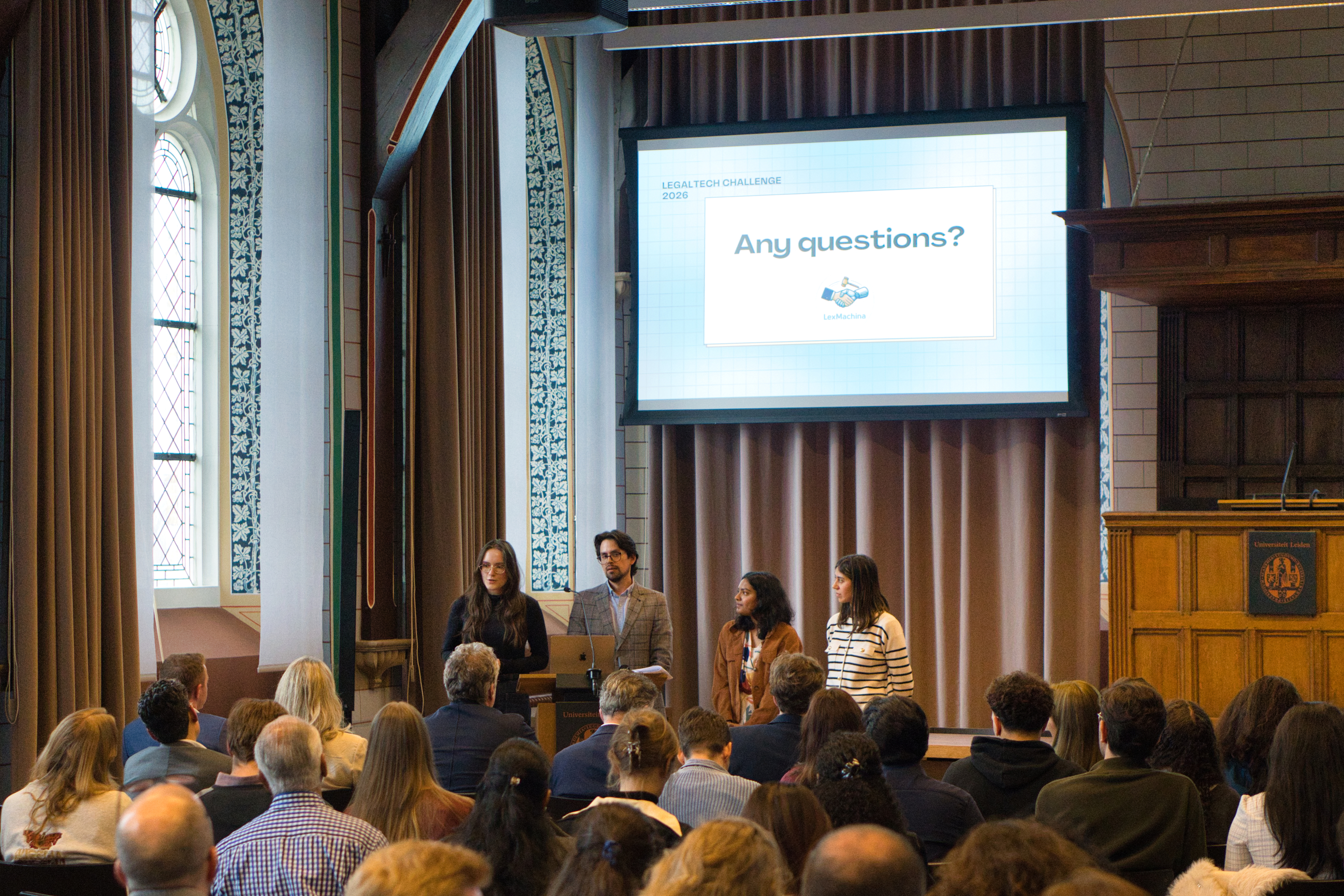 On 2 April, the final of the Legal Tech Challenge 2026 took place in the Academy Building of Leiden University. During the final, teams of students pitched their technological solutions to societal challenges.